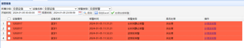 在报警报表里可以查询设备报警信息,还可以在报警类型里查询特定报警的信息